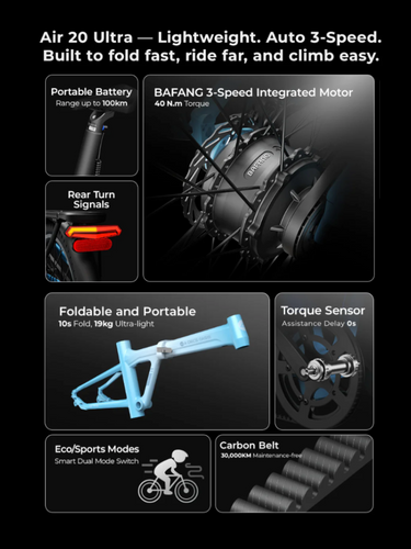 - 2nd Gen BAFANG H73O Hub Motor 3-speed, delivering 24% more torque than previous model